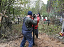 Затем разравниваем землю на территории могилы и выкапываем траншею под заливку бетонного фундамента.