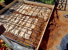 Затем укладываем на территорию места захоронения арматурную сетку, предварительно расстелив на участке геотекстиль.